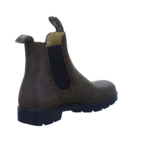 Diese trendigen Chelsea Boots von der Marke Blundstone ergänzen unterschiedlichste Outfits. Das Obermaterial zeichnet sich durch das echte Leder aus. Das wasserabweisende Obermaterial sorgt für einen hohen Tragekomfort auch bei feuchtem Wetter. Als praktisch erweist sich das herausnehmbare Fußbett. Das Schuhpaar kommt ohne Verschluss aus, sodass ganz bequem hineingeschlüpft werden kann.