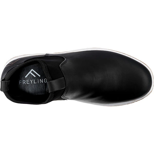 Vervollständigen Ihre Garderobe: Die stilecht gestalteten Chelsea Boots von Freyling. Das Modell kommt ohne Verschluss aus, sodass im Handumdrehen hineingeschlüpft werden kann. Das funktionale Obermaterial der Schuhe setzt sich zusammen aus einem ansprechenden Materialmix aus Synthetik und Textil.
