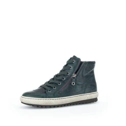 Damen – Stiefel in grün aus Glattleder mit Reißverschluß + Schnürung und Wechselfußbett.
