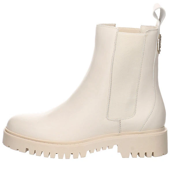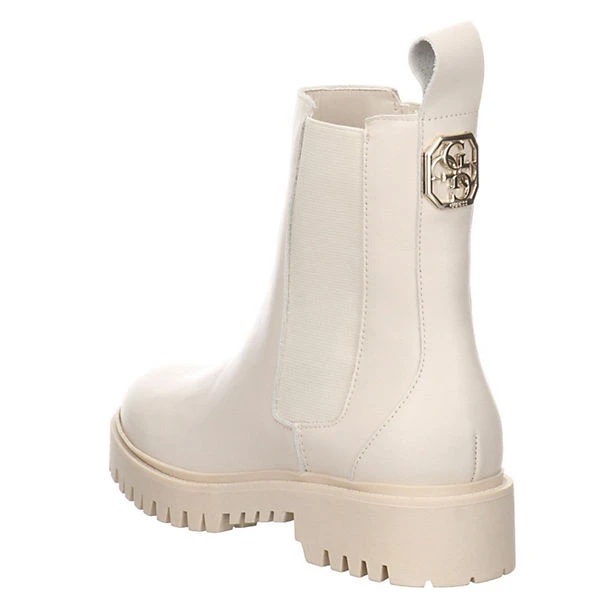 Die Boots Oakess von Guess überzeugen mit feinem Glattleder im trendigen Hellbeige. Farblich passende Stretcheinsätze vervollständigen den angesagten Chelsea-Look. Ergänzt wird das Design durch die markante Profillaufsohle, das goldfarbene Logodetail und die Lederfersenschlaufe.