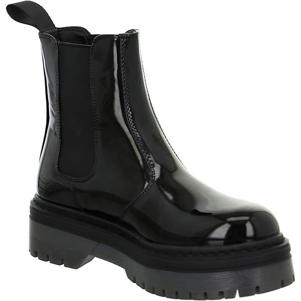 Lumberjack Damen Stiefeletten/ Chelsea Boots Schwarz Textil-Synthetik-Mix – Obermaterial in Lackoptik – elastische Einsätze im seitlichen Schaftbereich – Logoprägung auf der Außenseite im Fersenbereich -verstärkter Zehen- und Fersenbereich – praktische Anziehlasche – gepolsterte Leder-Decksohle – profilierte Laufsohle mit rutschhemmenden Eigenschaften