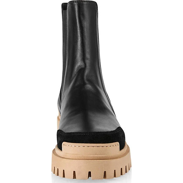 Ergänzen viele verschiedene Outfits: Diese ansprechend gestalteten Chelsea Boots von der Marke Marc Cain. Das Fußbett besteht aus atmungsaktivem Echtleder, das ein komfortables Trageerlebnis unterstützt. In die Schuhe kann schnell hineingeschlüpft werden. Das Obermaterial zeichnet sich durch das feine, echte Ziegenleder aus.