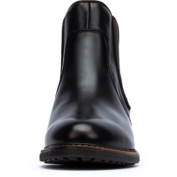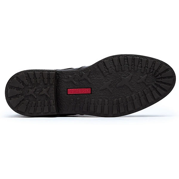 Diese klassischen Stiefeletten von Pikolinos sind aus Leder und Textil gefertigt und zeigen sich mit elastischen Einsätzen zu beiden Seiten des Schafts. Die bequem gepolsterte Decksohle sorgt für einen hohen Tragekomfort und die profilierte Laufsohle für die nötige Trittsicherheit.