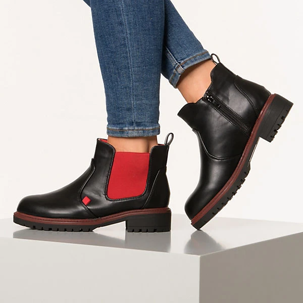 Die stilechten Chelsea Boots aus dem Hause Inselhauptstadt vervollständigen unterschiedlichste Outfits. Das Textil-Futter bestehend aus Polyester passt sich optimal an den Fuß an und ist zudem äußerst anschmiegsam. Der Blockabsatz in komfortabler Höhe bietet ein angenehmes Tragegefühl und einen modischen Touch. Das ansprechend gestaltete Obermaterial aus Synthetik unterstützt die Aufmachung des Modells. Die Schuhe sind mit einem Reißverschluss versehen.